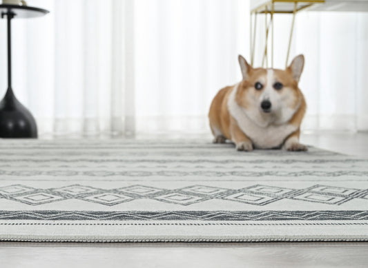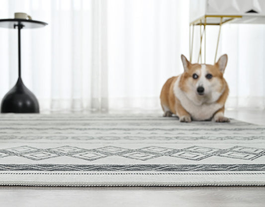 Foldable Rug with Style: This Moroccan area rug inspired by Moroccan tribal designs, are printed in dark gray on a field of gray.Anchor your modern space and add graphic punch to almost any rooms.It is not only stylish but also conveniently foldable, making it easy to carry and tiny to store. If temporary creases appear upon arrival, simply smooth them out, lay the rug flat on the floor, and walk around; the creases will naturally disappear within a few days.