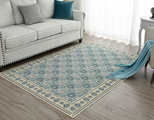 Foldable Rug with Style: This Persian area rug with a patchwork motifs looks fresh and modern in shades of blue, navy and beige. Add flair to any space and pair well with boho, modern and farmhouse decor.It is not only stylish but also conveniently folddable, making it easy to carry and tiny to store. If temporary creases appear upon arrival, simply smooth them out, lay the rug flat on the floor, and walk around; the creases will naturally disappear within a few days.